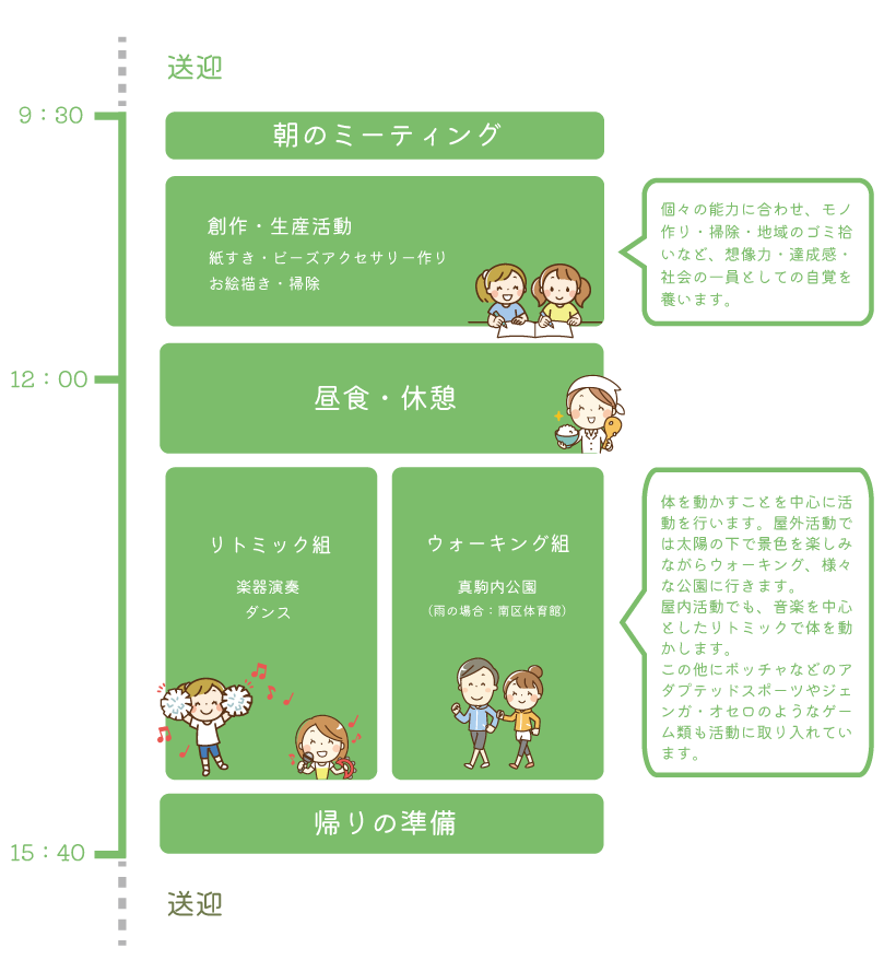 メインのお部屋になります、昼食を食べたり集まって活動を行う場所です。